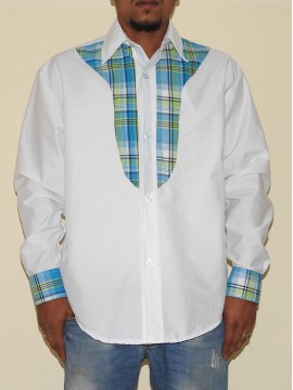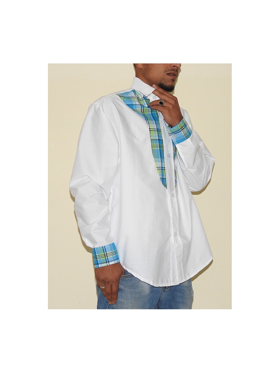Chemise tout en coton avec encolure et bandeau sur les deux côtés pour Homme en madras, sympas à porter aux couleurs des Antilles, existe dans toutes les tailles.