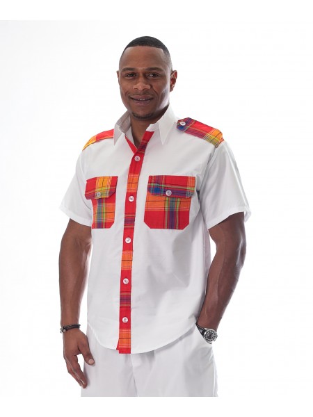 Ensemble bermudas en coton avec des bandes en Madras totalement traditionnel.