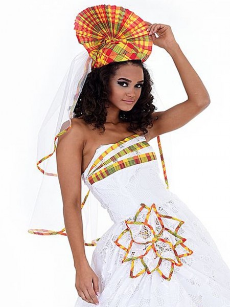 Sublime coiffe chaudière de cérémonie en Martinique agrémenté de perle en doré.