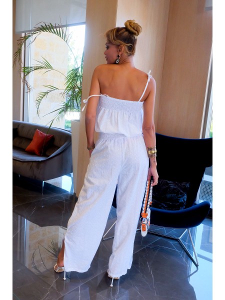 Sublime combi pantalon avec de légères fentes de chaque côté pour femme, réglable au niveau du haut, sympas à porter aux couleurs des Antilles, existe dans toutes les tailles. Fendu de chaque côtés.