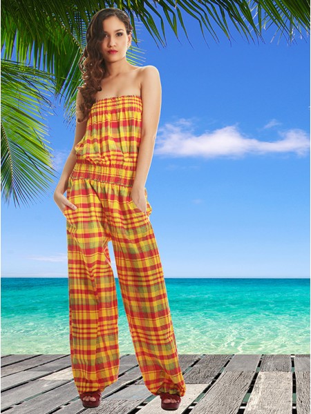Combinaison longue sans bretelles, coupe cintrée à pantalon large avec élastique au niveau de la taille.