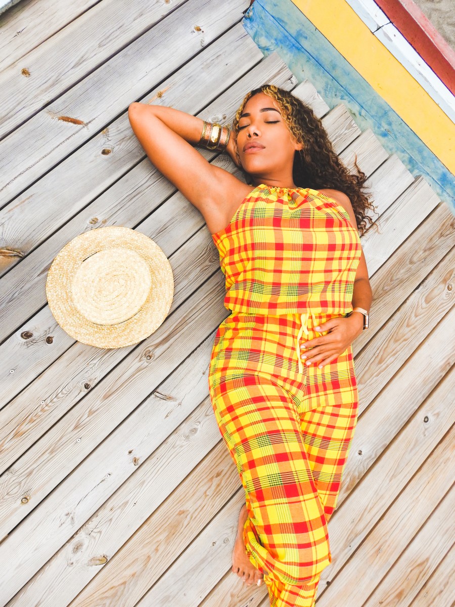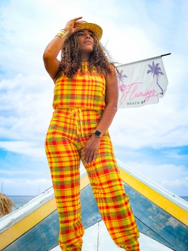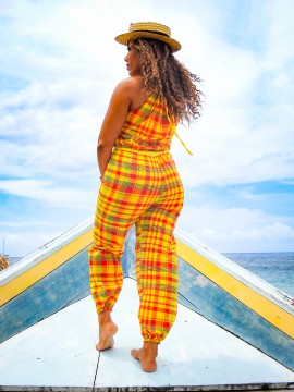 Combinaison longue sans bretelles, coupe cintrée à pantalon large avec élastique au niveau de la taille.