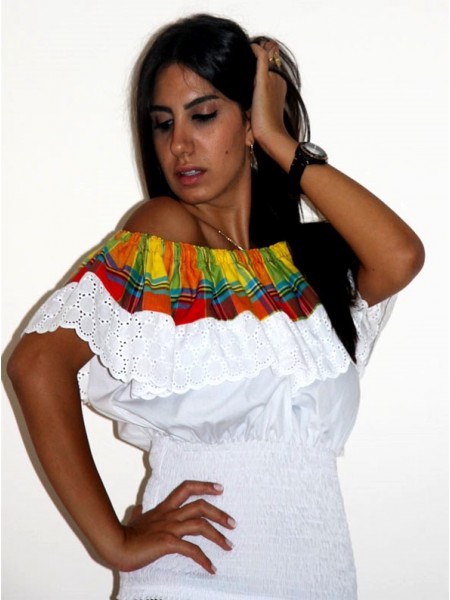Corsage col bateau au volant froncé et smocks au niveau du buste, parfait pour l'associé à une jupe de la collection DODY.