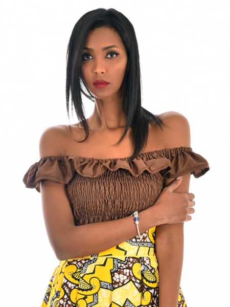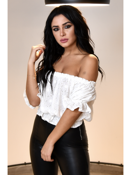 Corsage col bateau au volant froncé et smocks au niveau du buste, parfait pour l'associé à une jupe de la collection DODY.