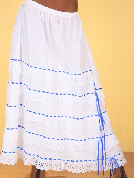 Corsage col bateau au volant froncé et smocks au niveau du buste, parfait pour l'associé à une jupe de la collection DODY.