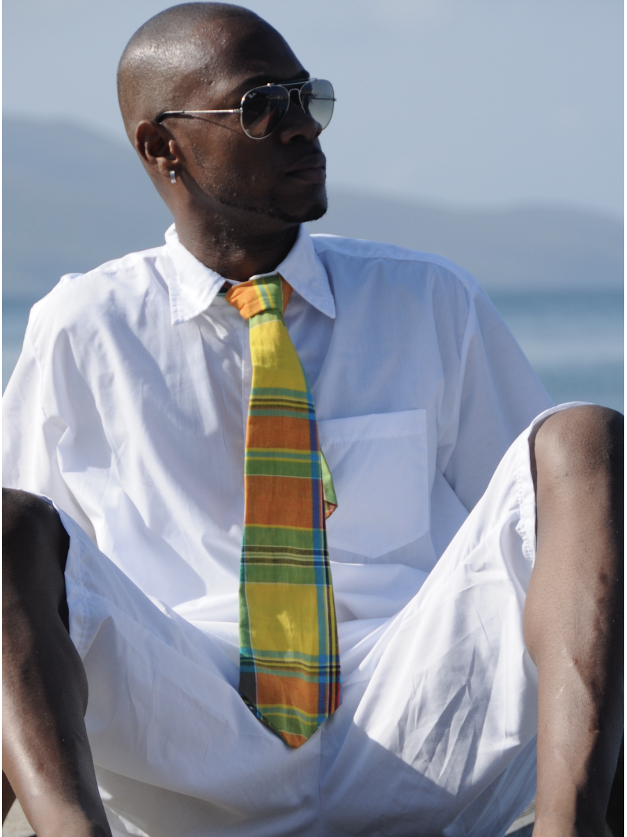 Toute tenue créole masculine peut-être accompagnée d'un accessoire tel que cet attirante cravate entièrement en madras.