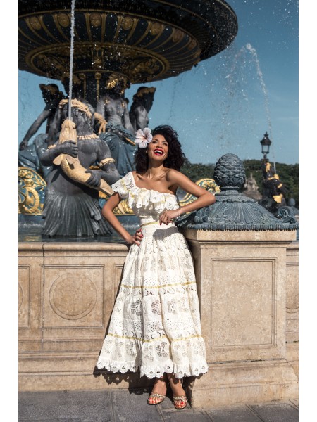 VoilĂ une adorable robe crĂ©ole facile et pratique qui permet de se vĂȘtir Ă lâantillais tout en offrant confort et allure fĂ©minine. Robe longue et ample, col en bateau, boutonnĂ©e devant avec ceinture Ă nouer sur la taille.