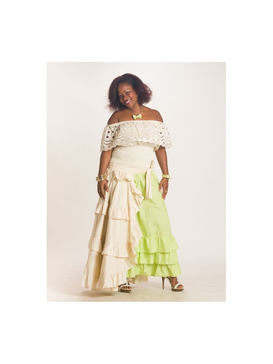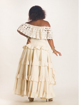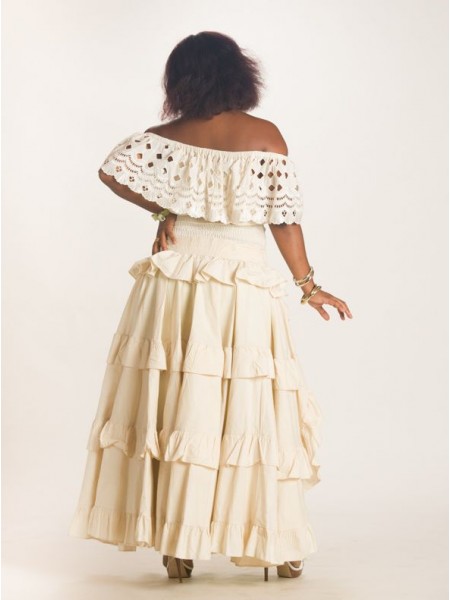 Cet ensemble jupe en coton et en Broderie est la tenue idéale pour tout évènement en famille ou entre amies. Le corsage à volant en broderie lui permet d'être à la fois confortable et élégante, donne à la tenue une apparence sexy pour pouvoir attirer l'attention. Sa jupe en coton mi longue laissant apparaitre des volants en coton rendent cet ensemble original et unique. L'ensemble peut parfaitement être jumelé avec des accessoires de votre choix.