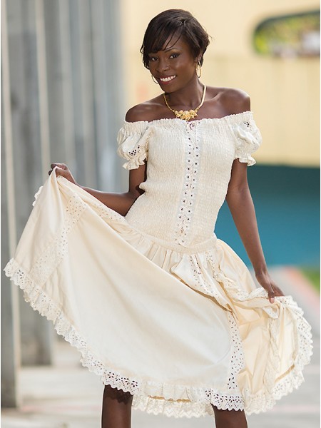 C’est L'ensemble parfait pour les fêtes de fin d'année que l’on veut toutes : parfaite au soleil, idéaux pour organiser des garden-parties, et faciles à assortir avec des bijoux, des pochettes et des accessoires spartiates. Une ode à la broderie anglaise de couleur beige, exquise et romantique.