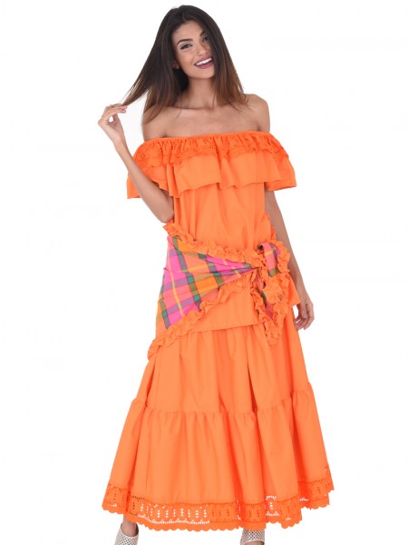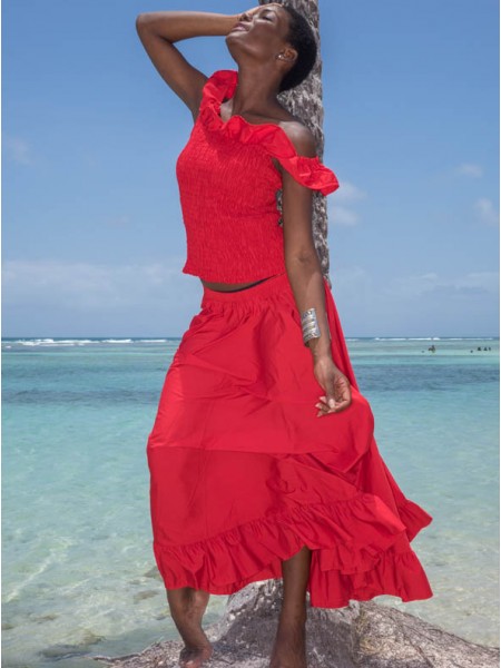 Cet ensemble en Coton est la tenue idéale pour tout évènement en famille ou entre amies. Le corsage lui permet d'être à la fois confortable et élégante, donne à la tenue une apparence sexy pour pouvoir attirer l'attention. Sa jupe longue fendu devant laissant apparaitre des volants en coton rendent cet ensemble original et unique. L'ensemble Cameroun peut parfaitement être jumelé avec des accessoires de votre choix.
