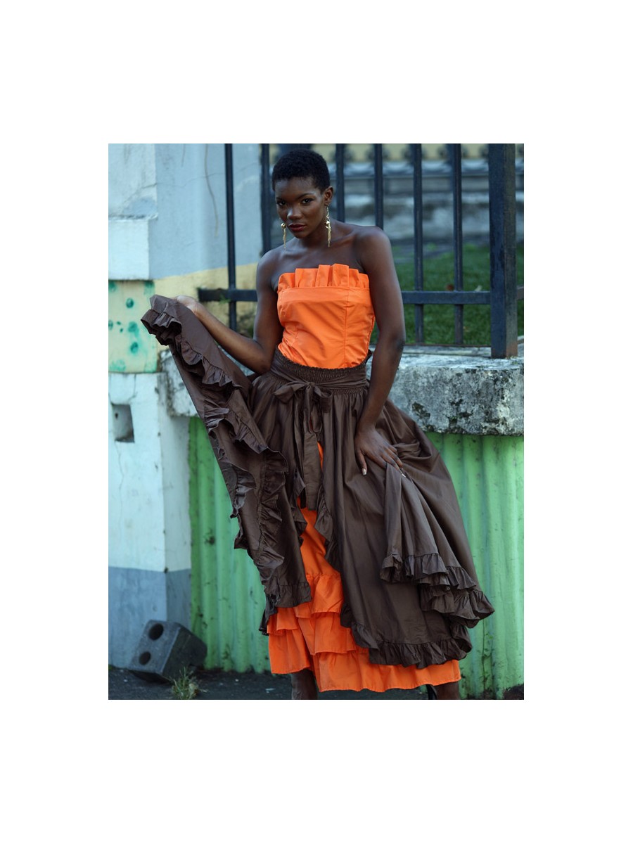Cet ensemble en Coton est la tenue idĂ©ale pour tout Ă©vĂšnement en famille ou entre amies. Le corsage lui permet d'ĂȘtre Ă la fois confortable et Ă©lĂ©gante, donne Ă la tenue une apparence sexy pour pouvoir attirer l'attention. Sa jupe longue fendu devant laissant apparaitre des volants en coton rendent cet ensemble original et unique. L'ensemble Cameroun peut parfaitement ĂȘtre jumelĂ© avec des accessoires de votre choix.