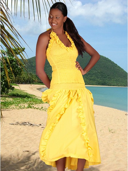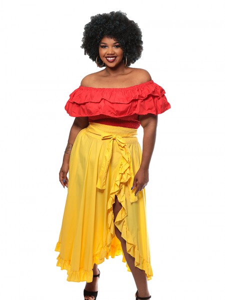 Le style chic antillais est parfaitement représenté par l'ensemble Fleur tout en madras de la collection Dody pour femmes. Cet ensemble vous offre à la fois confort et élégance, porter l'ensemble Fleur vous donnera un sentiment de légèreté flottante et une grande confiance, sans devoir se sentir inconfortable, par sa jupe en coton légèrement évasée. Le corsage en coton à manches bouffantes accentue le côté féminin de cette tenue par les nervures tout au long de ses manches qui permet de dévoiler les belles épaules nues pour une apparence sexy.