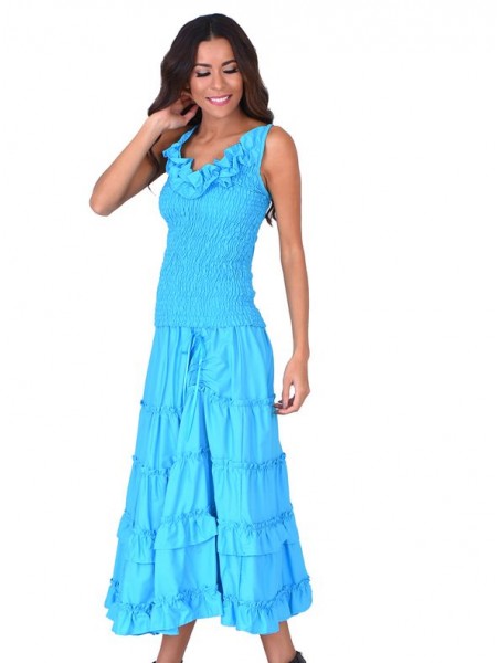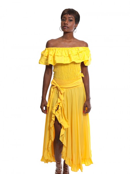 Cet ensemble en Coton est la tenue idéale pour tout évènement en famille ou entre amies. Le corsage lui permet d'être à la fois confortable et élégante, donne à la tenue une apparence sexy pour pouvoir attirer l'attention. Sa jupe longue fendu devant laissant apparaitre des volants en coton rendent cet ensemble original et unique.