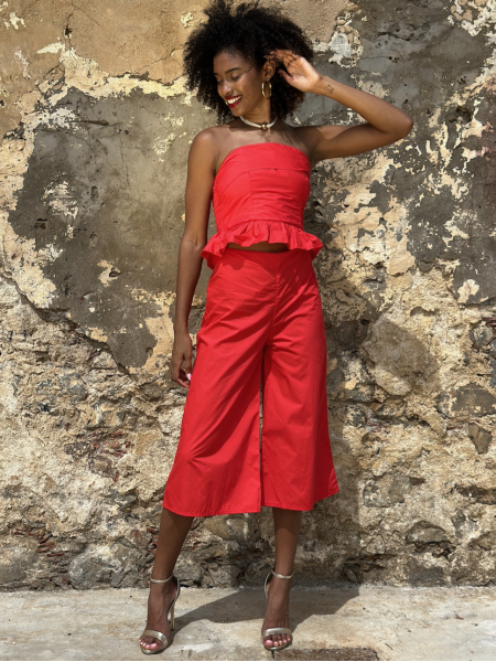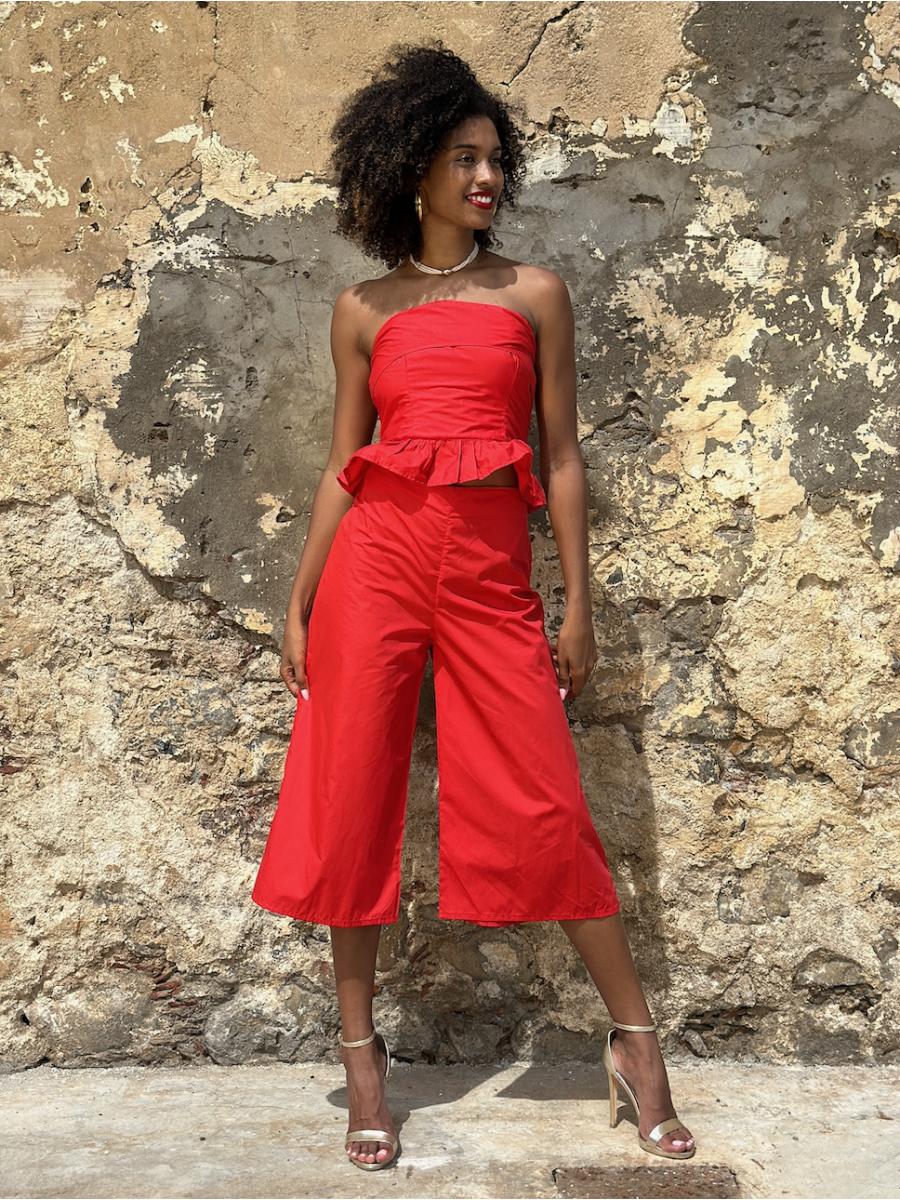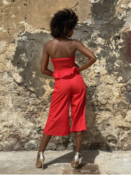 Jolie ensemble pantalon entièrement en véritable coton accompagné d'un bustier entièrement smockés dans le dos.