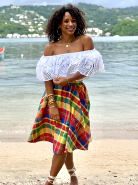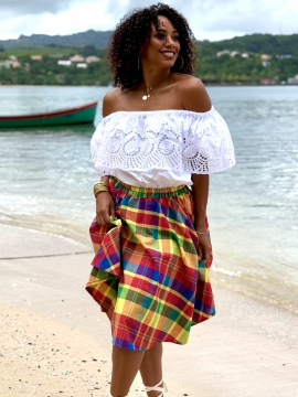 Le bel ensemble jupe Lambada entièrement en madras de la magnifique collection Dody pour femmes vient compléter votre garde-robe. Cette jolie jupe peut facilement être jumelée avec une pièce de chez vous ou un corsage Dody pour créer une tenue idéale a toute vos sorties avec les amies ou entre la famille.