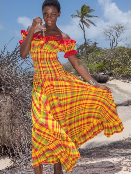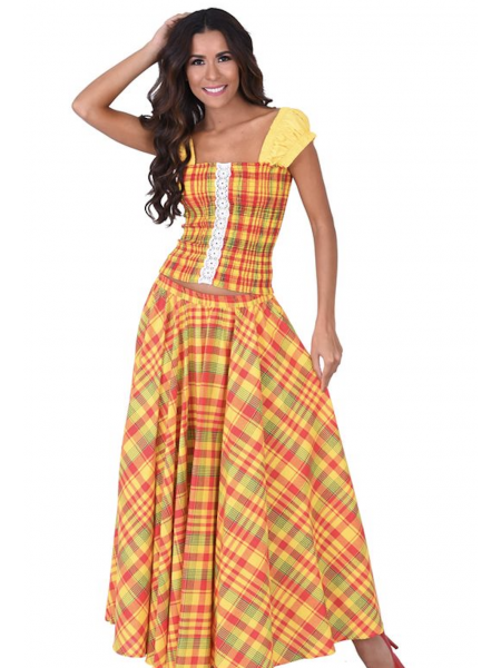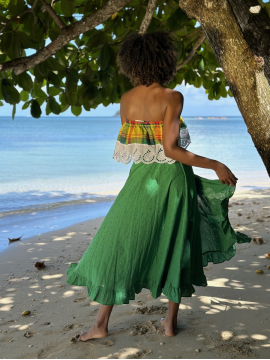 Le style chic antillais est parfaitement représenté par l'ensemble Cerise avec son haut en madras de la collection Dody pour femmes. Cet ensemble vous offre à la fois confort et élégance, porter l'ensemble Cerise vous donnera un sentiment de légèreté flottante et une grande confiance, sans devoir se sentir inconfortable, par sa jupe en madras légèrement évasée.