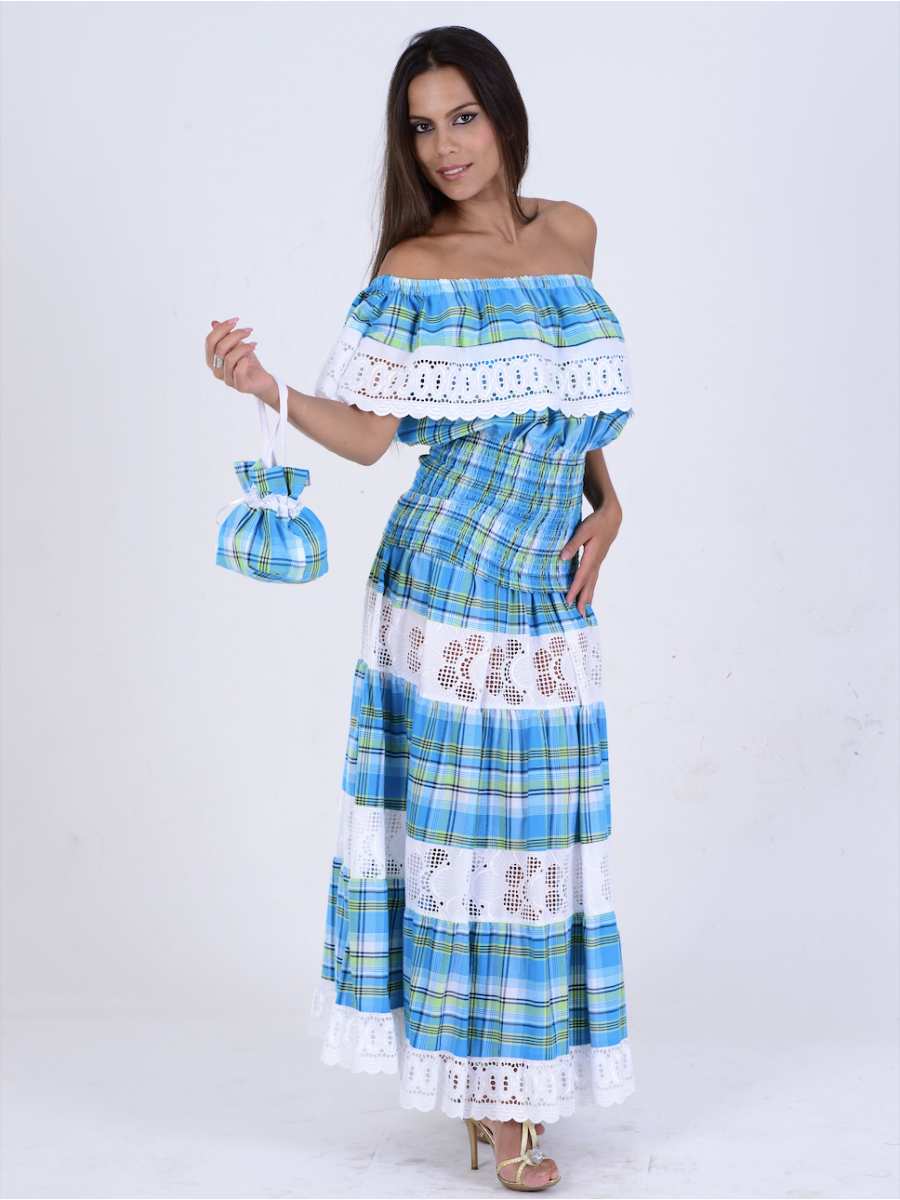 Une élégance sublime se rencontre avec la simplicité dans l'ensemble Chimène tout en madras de la collection Dody pour femmes. Chimène ne vous offre que d'élégance et de classe pour attirer l'attention. Cette robe entre deux cotons et madras est idéale pour marquer votre présence lors d'un évènement. Légère et simple, la robe Pauline garde son côté féminin par les broderies qui se marient parfaitement avec le coton sur le col et les manches. Cet ensemble peut facilement être jumelée par des accessoires et des talons.