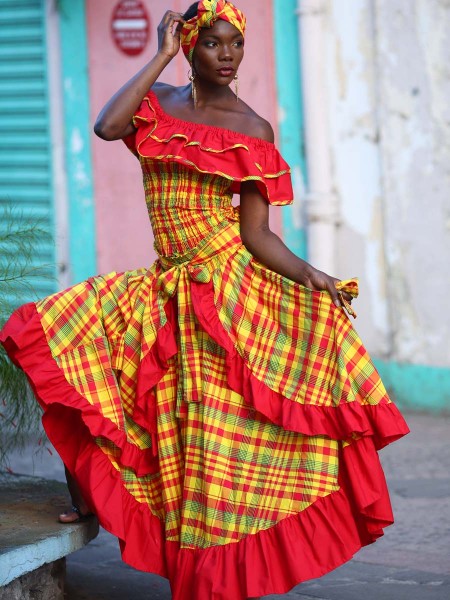 Le style traditionnel antillais est bien remarquable dans l'ensemble Etoile destinée à vêtir la jeune fille des îles, toujours de l'agréable collection de Dody. Très élégant ce beau modèle créole longue est réalisé entre madras et coton. Son col à volant est agrémenté et de différents coloris, laissant paraître la grâce des épaules. Pour finaliser votre tenue, Dody vous propose d'aller dans accessoires vendus séparément.