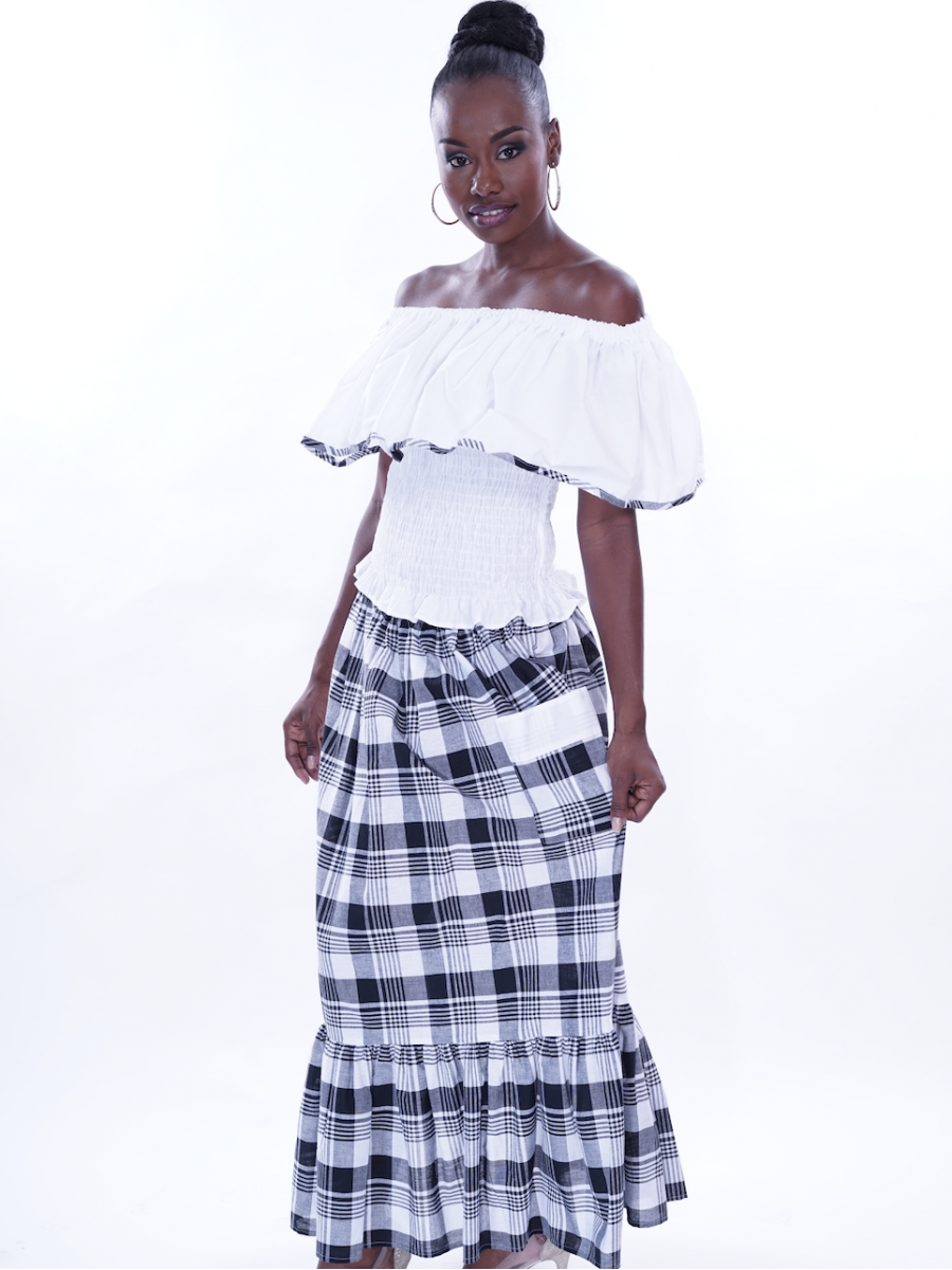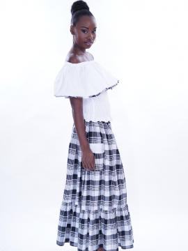 Ensemble tout en Madras et en coton blanc long à la fois élégante et sobre, toutes les qualités pour parfaire toutes vos occasions avec une élégance signé DODY.