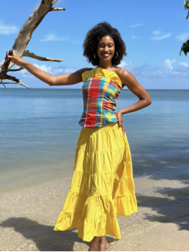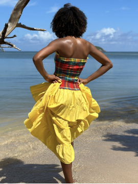 Jolie ensemble jupe en coton accompagné d'un bustier en madras entièrement smockés dans le dos.