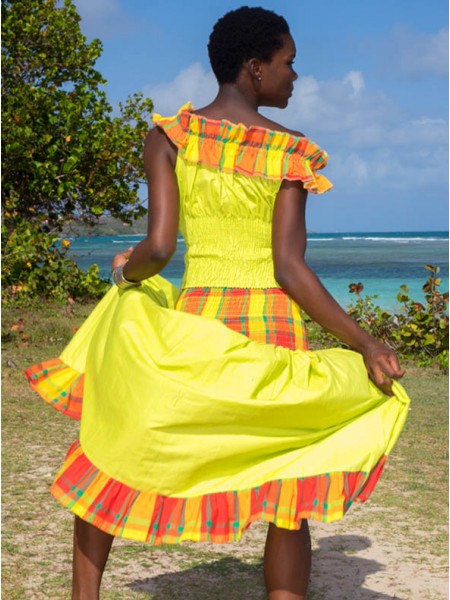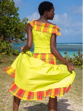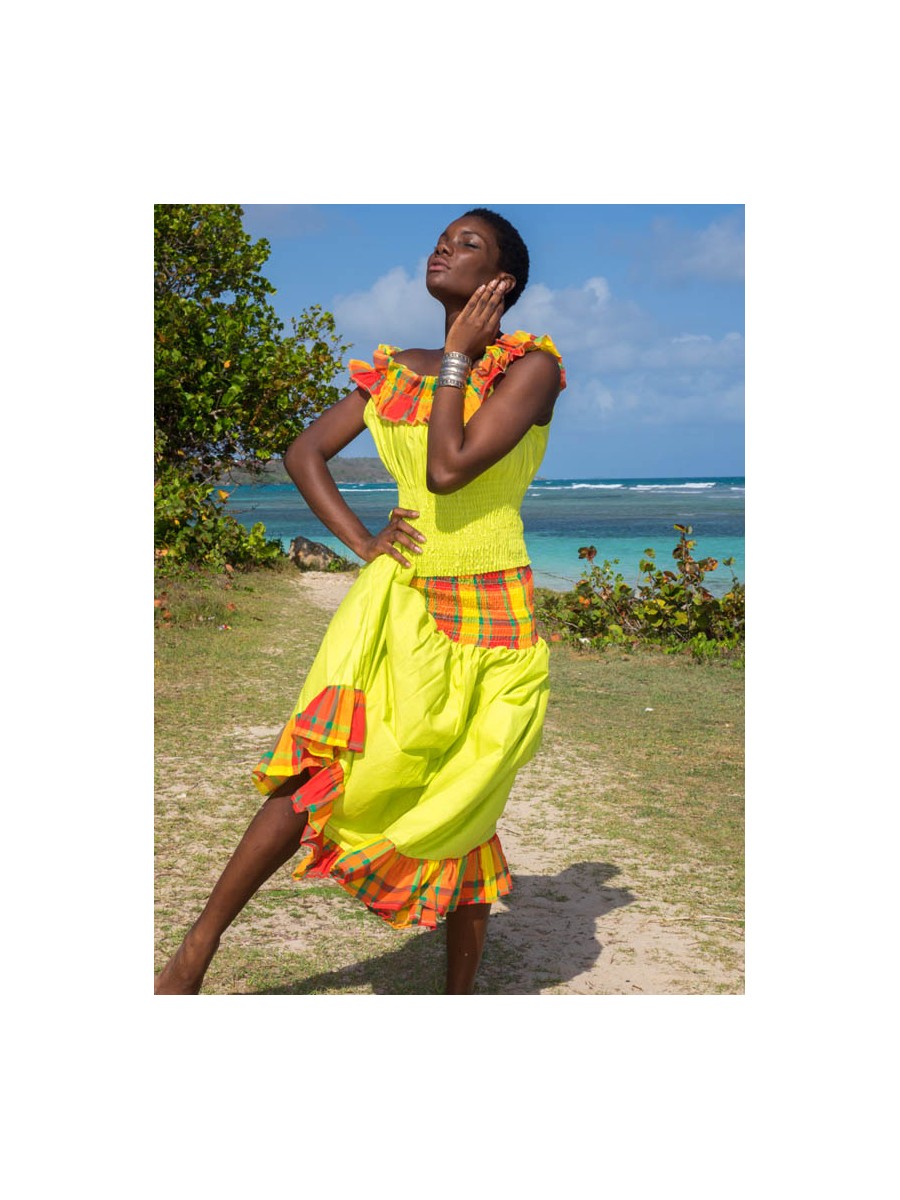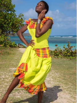 Cet ensemble en Madras est la tenue idĂ©ale pour tout Ă©vĂšnement en famille ou entre amies. Le corsage lui permet d'ĂȘtre Ă  la fois confortable et Ă©lĂ©gante, donne Ă  la tenue une apparence sexy pour pouvoir attirer l'attention. Sa jupe longue en Madras laissant apparaitre des volants en coton rendent cet ensemble original et unique. L'ensemble peut parfaitement ĂȘtre jumelĂ© avec des accessoires de votre choix.