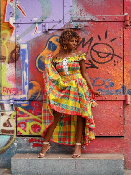 Cet ensemble pantalon en Madras est la tenue idéale pour tout évènement en famille ou entre amies. Le corsage lui permet d'être à la fois confortable et élégante, donne à la tenue une apparence sexy pour pouvoir attirer l'attention. Son pantalon en Madras laissant apparaitre rende cet ensemble original et unique. L'ensemble peut parfaitement être jumelé avec des accessoires de votre choix.