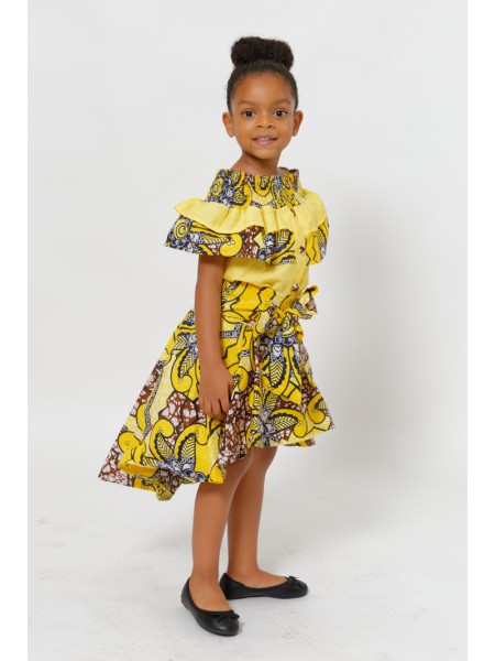 Ensemble jupe à volant tout en wax avec un léger mélange de coton.