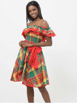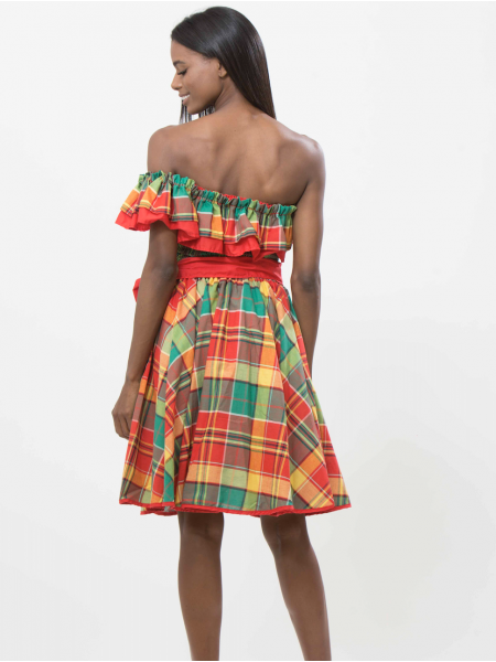 Bonheur de vêtement créole avec l'ensemble Amadou entièrement en madras de la collection Dody pour femmes. Cet ensemble longueur genou est l'idéale pour ceux qui cherchent le confort.