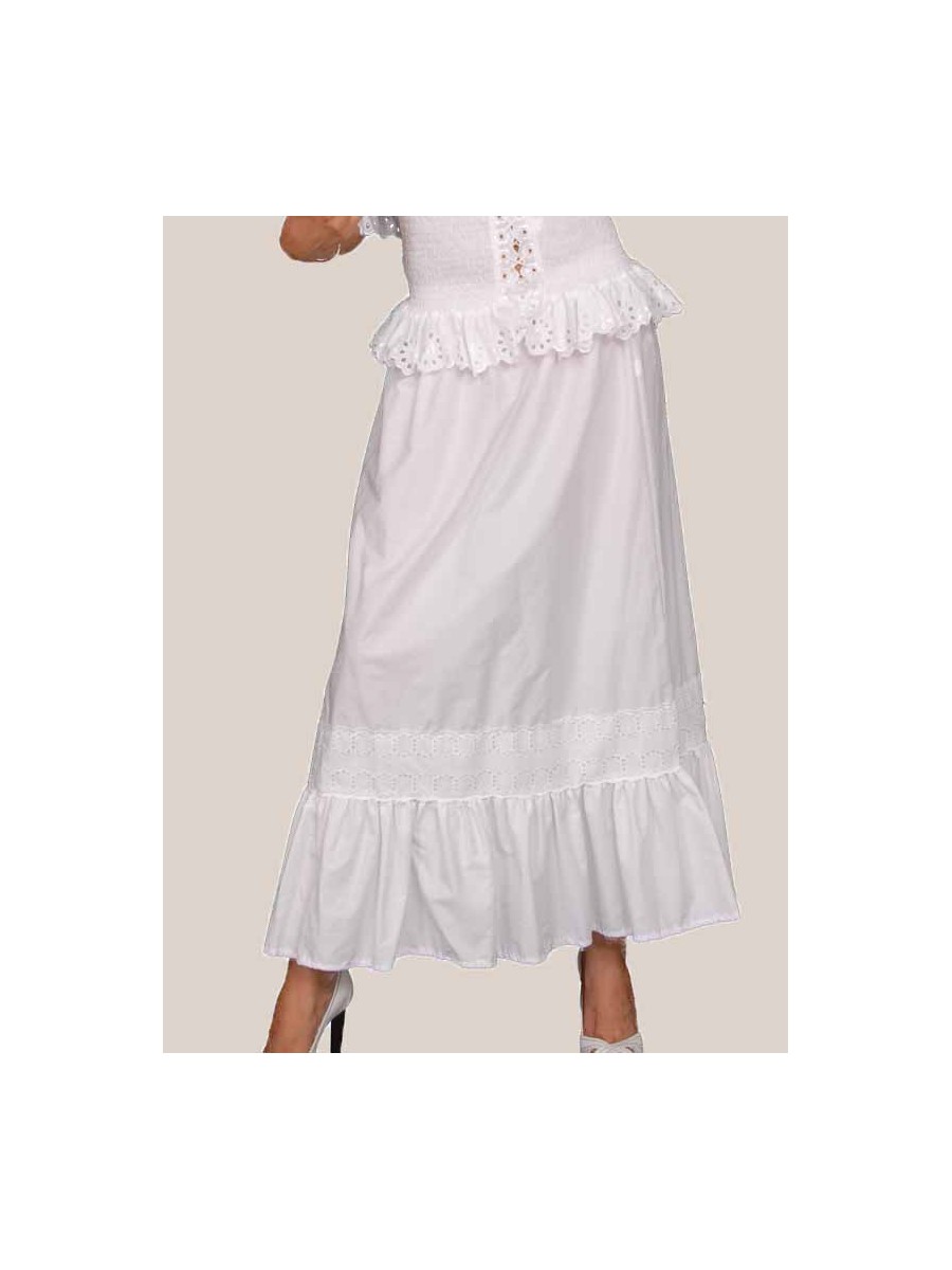 Ample, simple, légère, et ajustée à la taille afin de faire étalage à votre figure. La jupe créole Chacha est agrémentée de e plis juste au-dessous du smock de la taille et un volant froncé tout en bas en une magnifique broderie anglaise qui donnent à cette jupe un effet spécial.