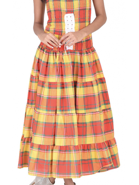Ample, simple, légère, et ajustée à la taille, donc parfaite pour faire étalage à votre silhouette féminine pour une apparence sexy. La jupe créole Togo est agrémentée de plis juste au-dessous du smock de la taille et un volant froncé tout en bas qui donnent à cette jupe un effet spécial.