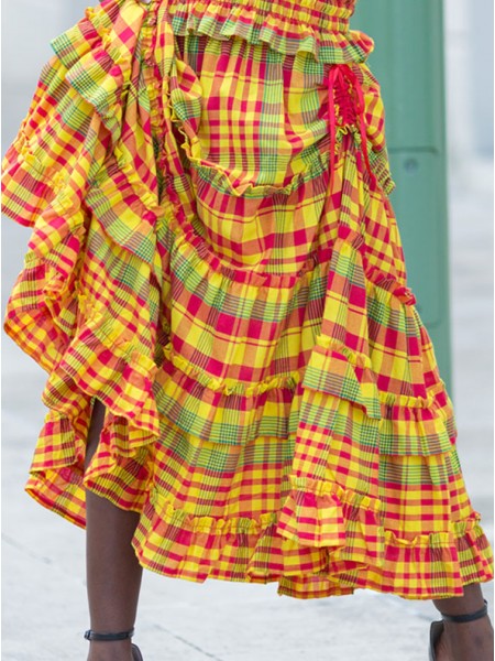 La simple jupe Wesley entièrement en madras avec un volant en coton de la magnifique collection Dody pour femmes vient compléter votre garde-robe. Cette jolie jupe peut facilement être jumelée avec une pièce de chez vous ou un corsage Dody pour créer une tenue idéale à toutes vos sorties avec les amies ou entre la famille.