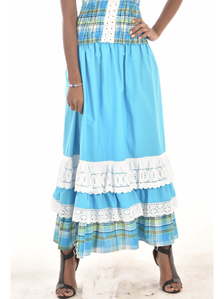 La simple jupe Wesley entièrement en madras avec un volant en coton de la magnifique collection Dody pour femmes vient compléter votre garde-robe. Cette jolie jupe peut facilement être jumelée avec une pièce de chez vous ou un corsage Dody pour créer une tenue idéale à toutes vos sorties avec les amies ou entre la famille.