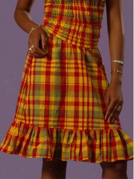 La simple jupe Fidèle entièrement en madras de la magnifique collection Dody pour femmes vient compléter votre garde-robe. Cette jolie jupe peut facilement être jumelée avec une pièce de chez vous ou un corsage Dody pour créer une tenue idéale à toutes vos sorties avec les amies ou entre la famille.