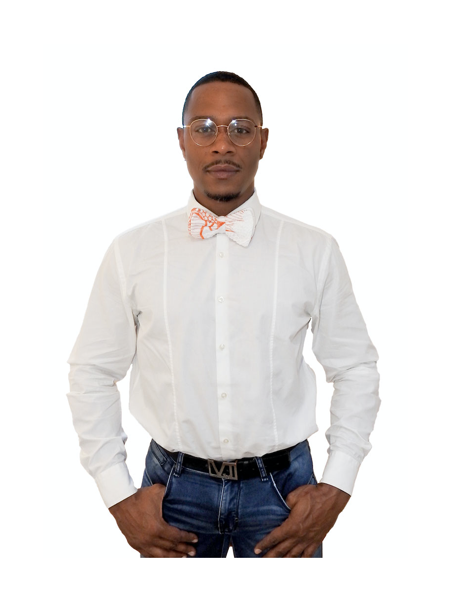 Toute tenue créole masculine peut-être accompagnée d'un accessoire tel que cet attirant nœud papillon en broderie qui se ferme de derrière à l'aide d'un velcro. 100 % coton