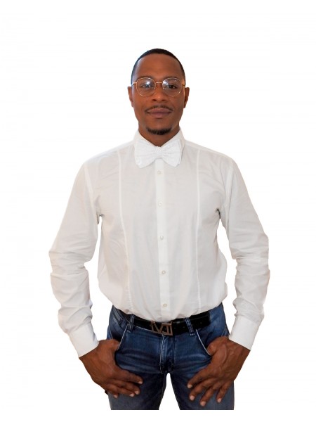 Toute tenue créole masculine peut-être accompagnée d'un accessoire tel que cet attirant nœud papillon en broderie qui se ferme de derrière à l'aide d'un velcro.
