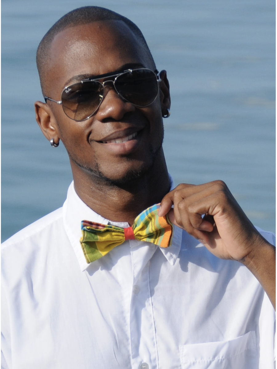 Toute tenue créole masculine peut-être accompagnée d'un accessoire tel que cet attirant nœud papillon en madras qui se ferme de derrière à l'aide d'un velcro.