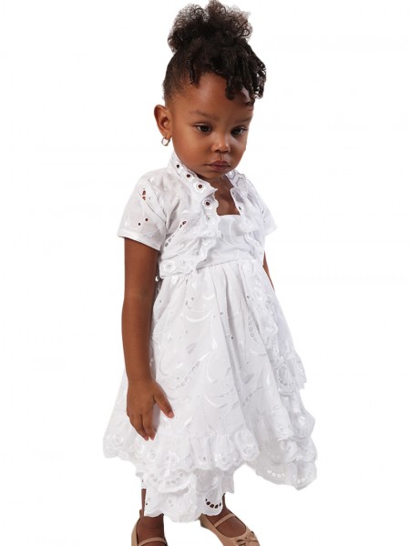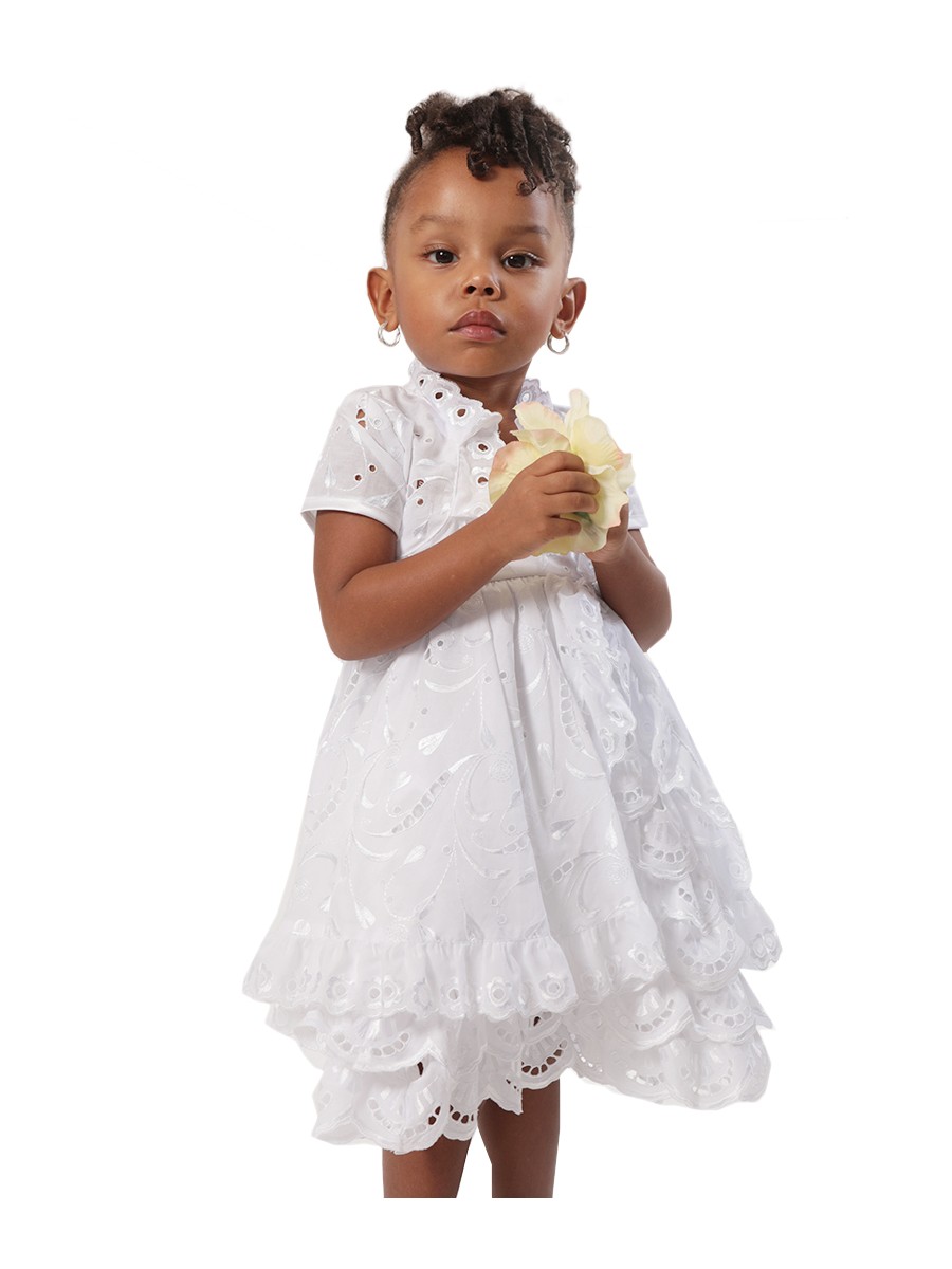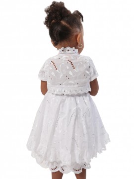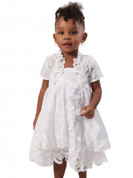 La robe Lily pour les baptêmes de la collection Dody pour les filles est la robe idéale pour faire bonheur a votre petit ange. Par sa texture de luxe entièrement en broderie anglaise et sa coupe élégante, votre petite fille se sentira comme une princesse. L'originalité de la robe Lily réside dans sa coupe courte évasée et agrémentée par des figures en broderie anglaise. Cette magnifique robe de Dody vient avec son propre boléro entièrement en broderie anglaise pour un accessoire simple et élégant qui vient compléter parfaitement la robe.