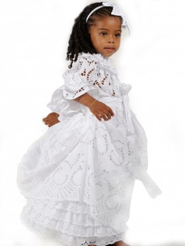 Vendue avec son jupon, robe baptêmes en broderie anglaise : col en bateau avec un élastique qui dégage les épaules. Ample, ouverte de devant, manches longues, une large ceinture à nouer à la taille. Pour finaliser la tenue, Dody vous propose d'aller dans accessoires vendus séparément.