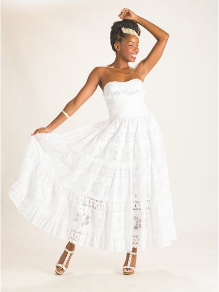 Les robes en broderie anglaise blanche pour femmes des Caraïbes représentent l'élégance estivale, alliant fraîcheur, raffinement et grâce dans des tenues féminines soigneusement élaborées.