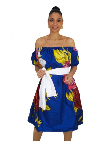 La fusion de mode et de confort dans la robe creole Laeticia de Dody ... En bustier charmant la nudité des épaules, évasée, ajustée à la taille par des smocks sur le dos et une ceinture faintaisiste nouée au-dessous de la poitrine. Réalisée en coton avec des froufrous en coton sur le haut et le bas.