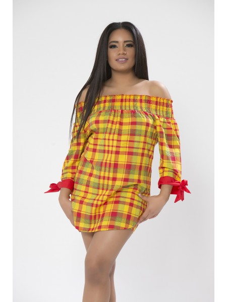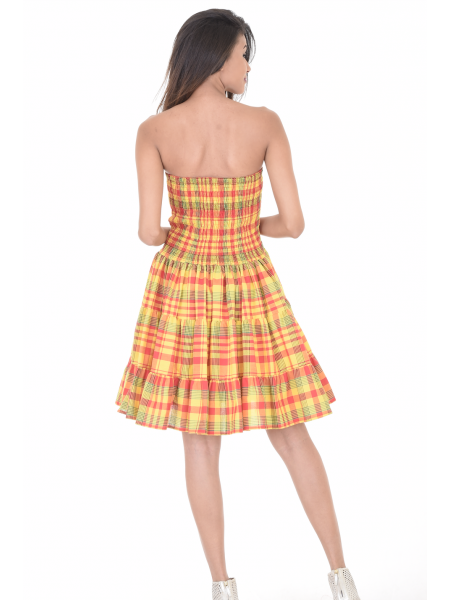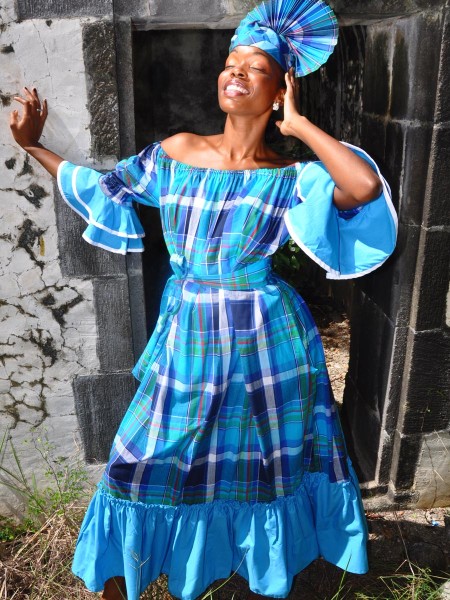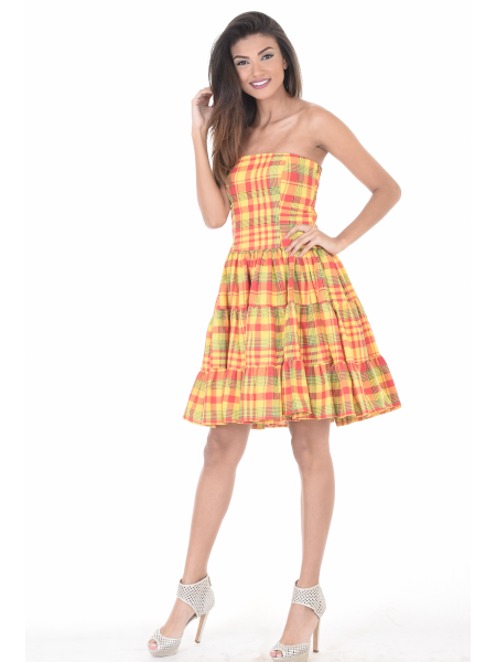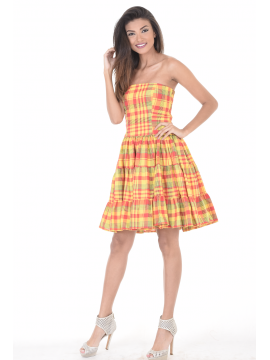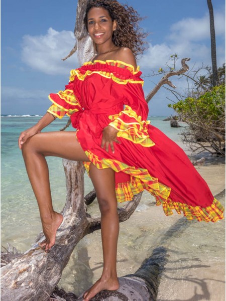 Le style traditionnel antillais est bien remarquable dans la robe courte Caraïbes destinée à vêtir la jeune fille des îles, toujours de l'agréable collection de Dody. Très élégant ce beau modèle créole est réalisé tout en madras.