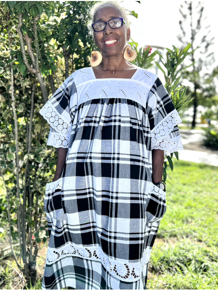 Le style classique antillais est représenté par la robe Flexy en madras de la collection Dody pour femmes. Cette robe Flexy est juste ce qu'il vous faut pour tout évènement en famille ou une sortie avec les amies grâce à sa légèreté et sa coupe flatteuse par sa ceinture en coton nouée à la taille en papillon qui permet de faire étalage à votre figure féminine et son col en forme de coeur avec des bretelles fines nouées à la nuque laissant apparaitre les belles épaules nues. L'originalité de cette robe réside dans sa texture entre deux madras et coton.