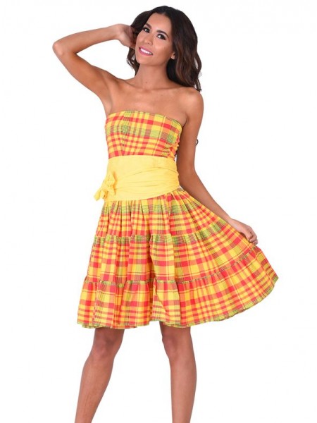 Le style classique antillais est représenté par la robe Loisir en madras de la collection Dody pour femmes. Cette robe Loisir est juste ce qu'il vous faut pour tout évènement en famille ou une sortie avec les amies grâce à sa légèreté et sa coupe flatteuse qui permet de faire étalage à votre figure féminine et son col en forme de coeur avec des bretelles fines nouées à la nuque laissant apparaitre les belles épaules nues. L'originalité de cette robe réside dans sa texture entre deux madras et coton. Loisir peut être jumelée avec des accessoires et des talons pour une tenue à porter en soirée comme au bureau. Vendu avec sa ceinture.