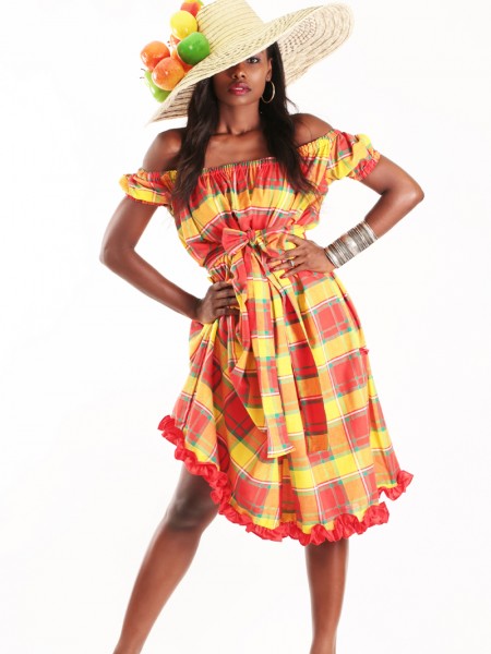 Le style classique antillais est représenté par la robe Orange en madras de la collection Dody pour femmes. Cette robe Orange est juste ce qu'il vous faut pour tout évènement en famille ou une sortie avec les amies grâce à sa légèreté et sa coupe flatteuse par sa ceinture en coton nouée à la taille en papillon qui permet de faire étalage à votre figure féminine et son col en forme de coeur avec des bretelles fines nouées à la nuque laissant apparaitre les belles épaules nues. L'originalité de cette robe réside dans sa texture entre deux madras et coton.