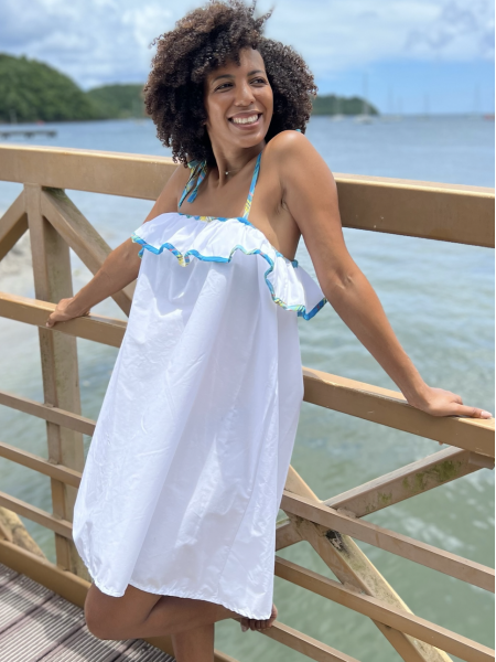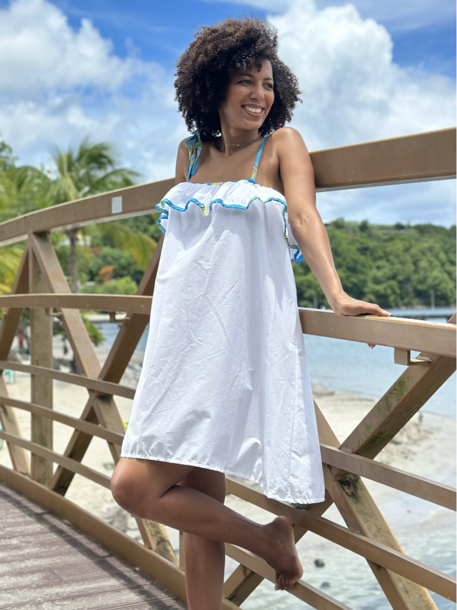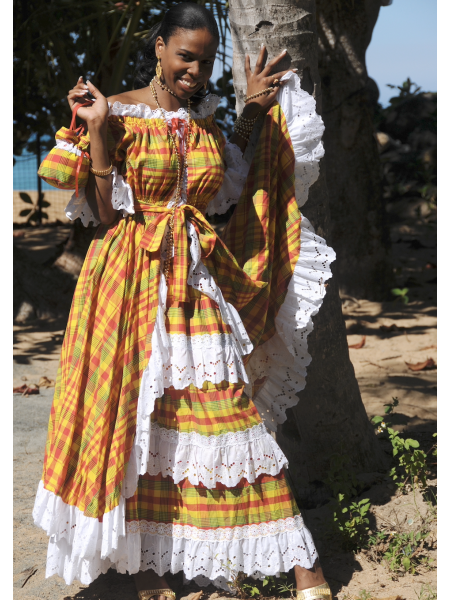 Entièrement en coton, la robe Nuevo Tradionnel, donnera avec sa coupe évasé, une allure particulière toujours recherchée par l’élégante femme des îles. Buste qui se distingue par sa largeur ; le haut elle joue la carte de la vraie représentation des caraïbes françaises.
