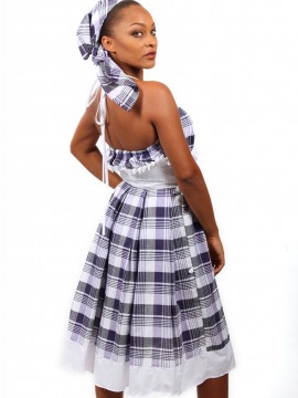 Le style classique antillais est représenté par la robe Orage en madras de la collection Dody pour femmes. Cette robe coquette est juste ce qu'il vous faut pour tout évènement en famille ou une sortie avec les amies grâce à sa légèreté et sa coupe flatteuse par sa ceinture en coton nouée à la taille en papillon qui permet de faire étalage à votre figure féminine et son col en forme de coeur avec des bretelles fines nouées à la nuque laissant apparaitre les belles épaules nues. L'originalité de cette robe réside dans sa texture entre deux madras et coton. Orage peut être jumelée avec des accessoires et des talons pour une tenue à porter en soirée comme au bureau. Vendu sans son bandeau