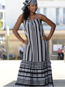Entièrement en madras, la robe Sucre Tradionnel, donnera avec sa coupe évasé, une allure particulière toujours recherchée par l’élégante femme des îles. Buste qui se distingue par sa largeur ; le haut elle joue la carte de la vraie représentation des caraïbes françaises.