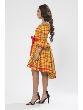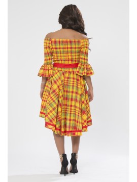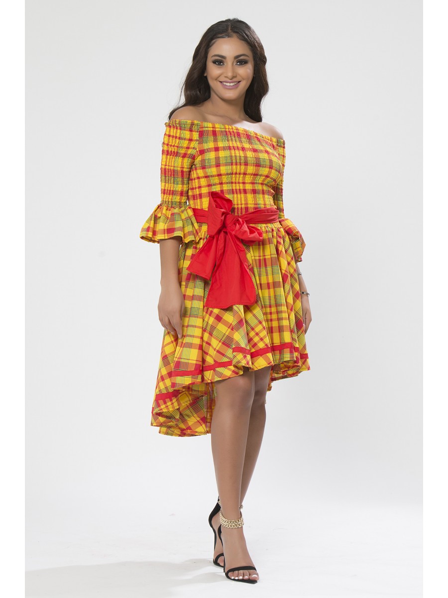 Cette robe en madras chic du style antillais est juste ce que votre garde-robe manque pour un belle journée en plein air, si légère et confortable vous ne cesserez d’attirer l’attention avec cette robe spéciale par sa coupe originale courte en avant et longue du derrière permettant de voir les jolies jambes. Très belle robe créole a l’apparence sexy montre les épaules et la figure féminine grâce une ceinture nouée à la taille. Une telle robe peut parfaitement être jumelée avec des talons.