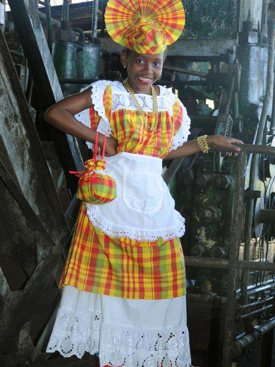 Robe créole traditionnelle pour fille, à aimer avec ses deux poches sur le devant de la robe, ses bandes en broderie créole sur les poches, sur les manches et sur le plastron.