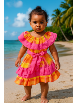 Rien que la pure beauté avec la magnifique robe Pinky de la collection Dody pour enfants ! Cette robe en madras du style antillais traditionnel capture l'innocence des enfants avec une apparence élégante et chic. Entre deux madras et coton, Pinky est une robe légère et confortable qui permet a votre petite fille de jouer tout en gardant une belle apparence.